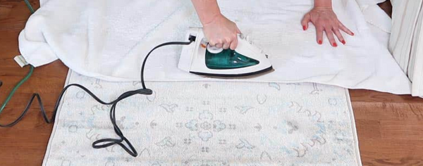 2. Place white towel onto rug, while applying pressure, iron directly over towel. Iron the full area of the rug.