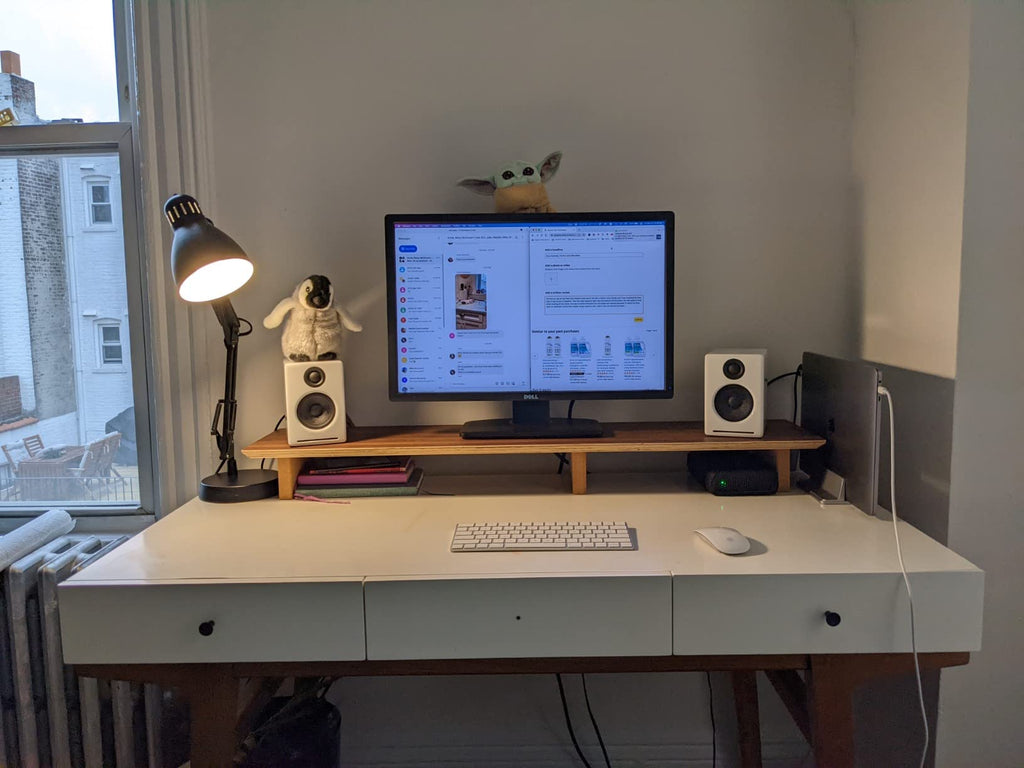 Available in oak, Black Walnut, and Black Walnut, Aothia's monitor stand is a visual masterpiece. Its sleek design adds a touch of modern elegance to your desk, transforming your workspace into a sophisticated haven. Revel in the envy of your colleagues as you showcase this elegant and practical accessory that seamlessly integrates into any office decor.