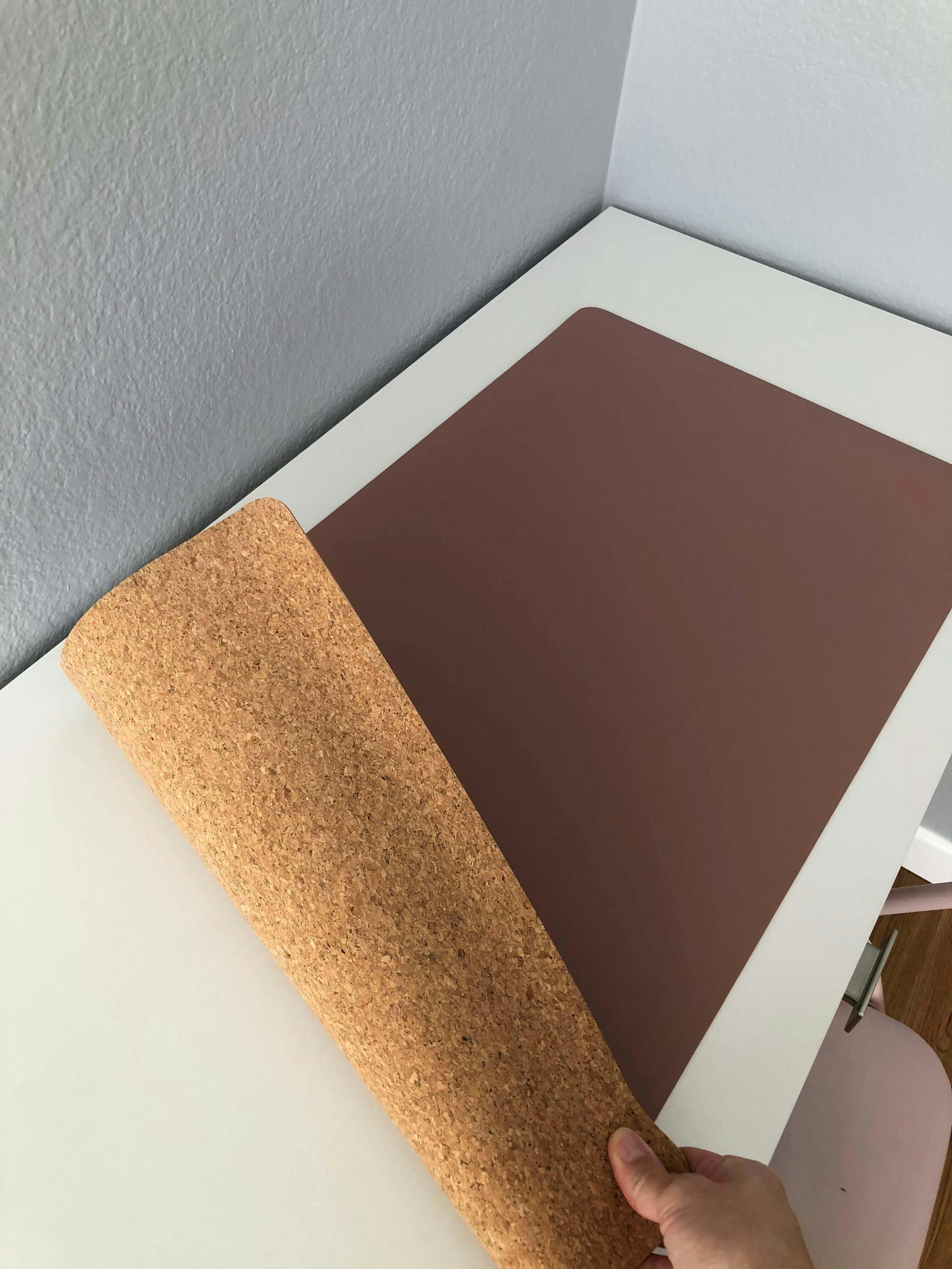 Our Aothia double-sided cork and leather desk pad is a game-changer.