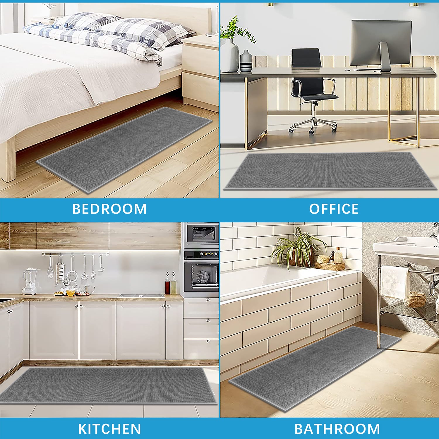 - Rubber Backing: long kitchen mat is specially designed to prevent slipping, with anti skid rubber granular lining increases the friction between the kitchen runner and the floor, which helps keep the kitchen fatigue mat sturdy and prevent shifting for keep you stay in place, rubber kitchen mats for floor anti fatigue are designed ergonomically engineered, provides comfortable support to help improve circulation and posture and to ensure you are able to stand comfortably.