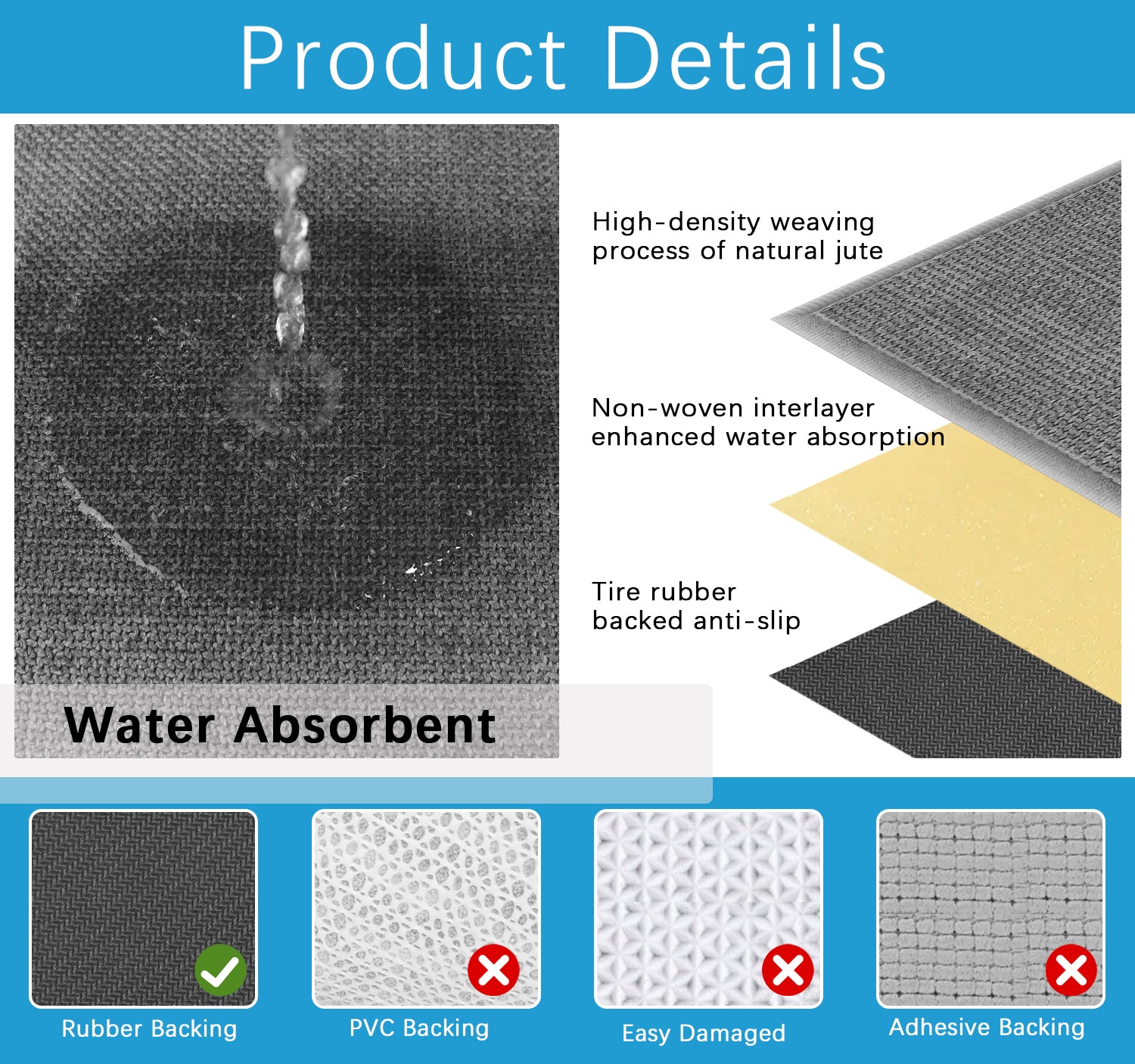 - Super Absorbent: absorbent kitchen runner rug is woven with absorbent fibers, which can absorb all kinds of liquids (such as water and oil ), saving much time in cleaning and drying the floor. thickness 0.2 inch washable kitchen rugs are designed ergonomically engineered to provide a perfect blend of soft texture and firm support. kitchen rugs and mats anti fatigue can protect the floor from the dropping sharp tableware or fragile bowls.