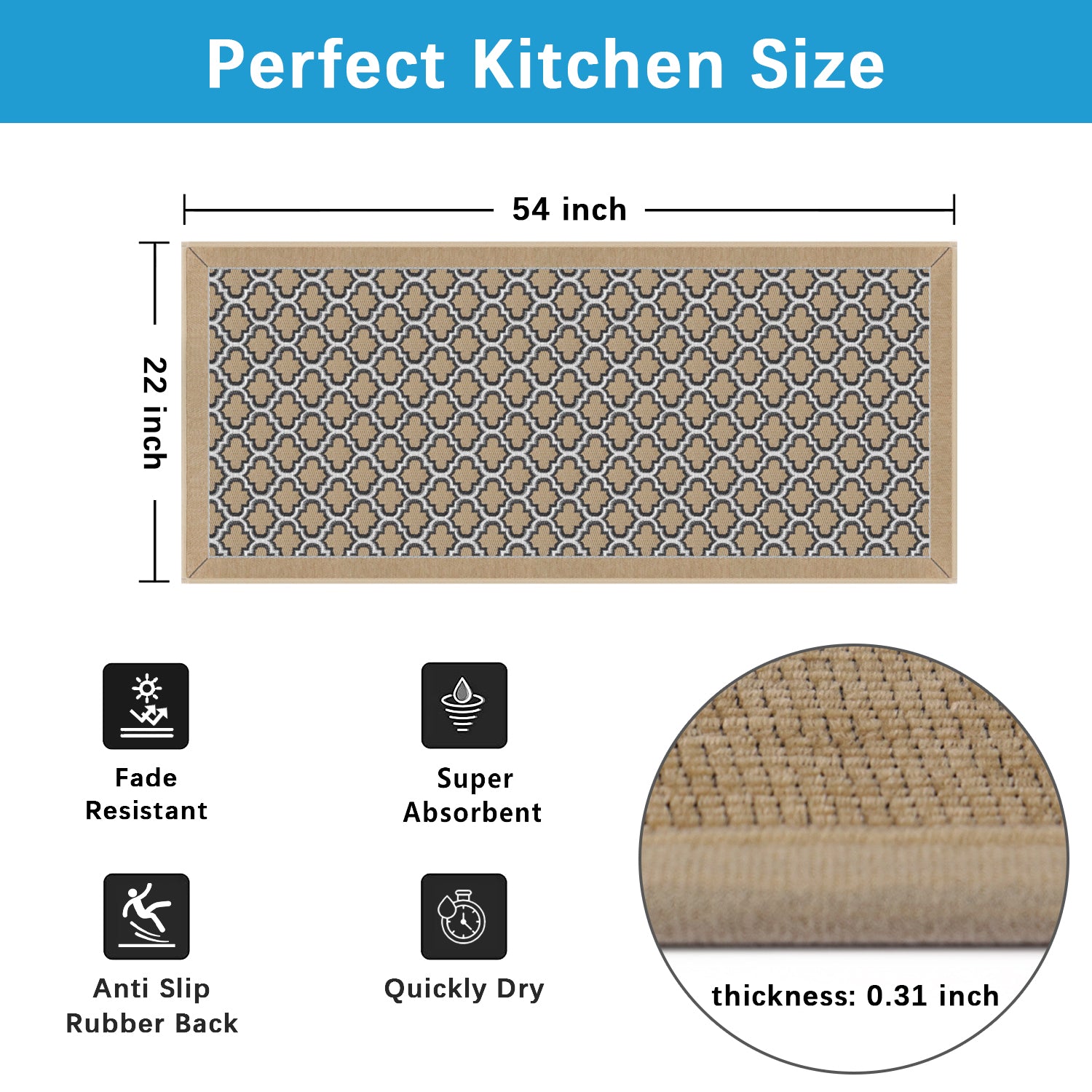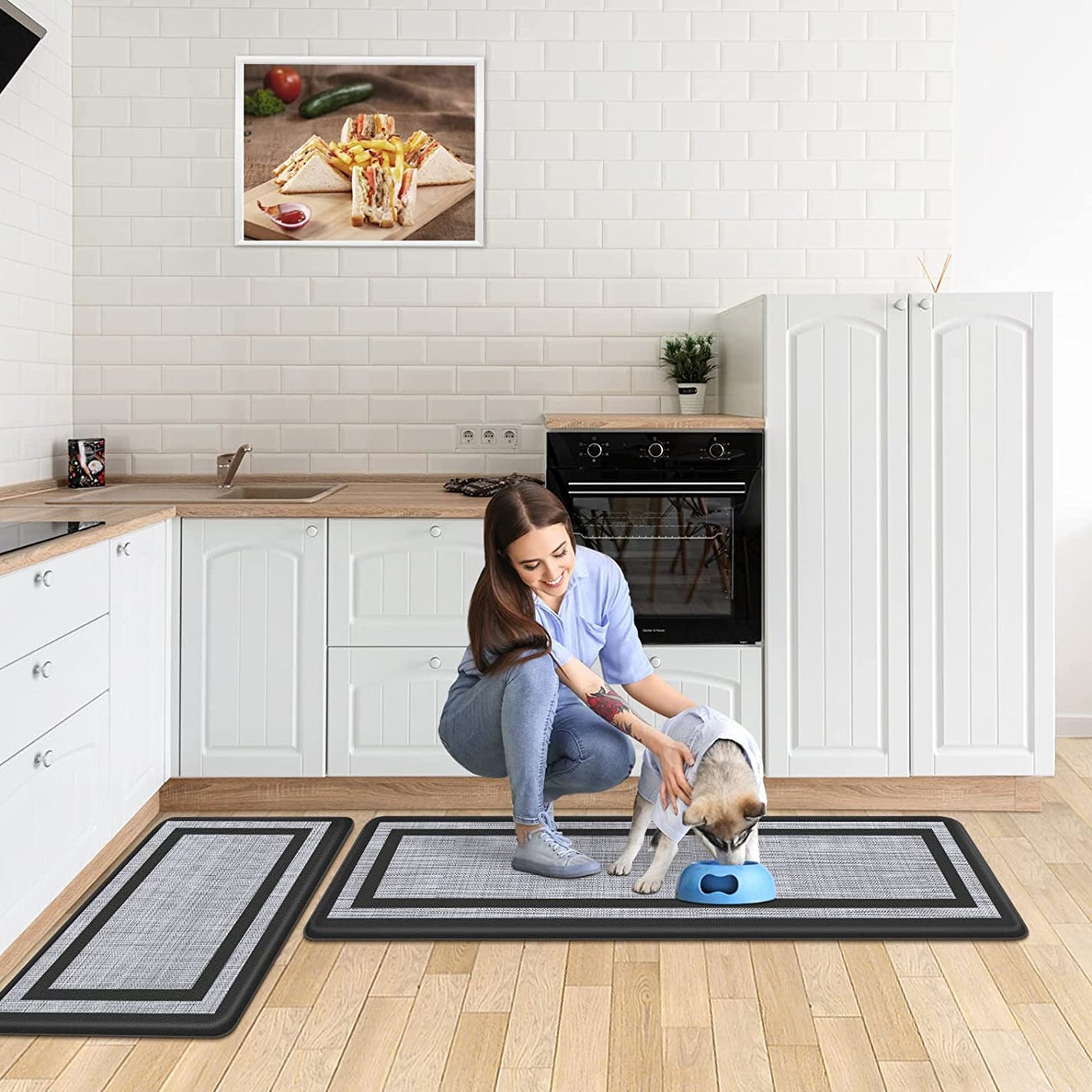 - ❤️ Non-Slip and Water Absorbent: Don't Worry About Sliding All Over Your Absorbent Kitchen Mat! Our Comfort Kitchen Mats Washable Can Provide Great Protection For Kids and Pets For Standing. and Edge Design Of Kitchen Non Slip Rugs Can Help Prevent Slips Or Trips. Waterproof Backing Keeps Kitchen Comfort Mat In Place For Added Safety and Stability, Used On Multiple Surfaces (Tile, Wood, Ceramic, Marble). [Warning] The Rug Must Always Be Placed On Flat Dry Surface During Use.