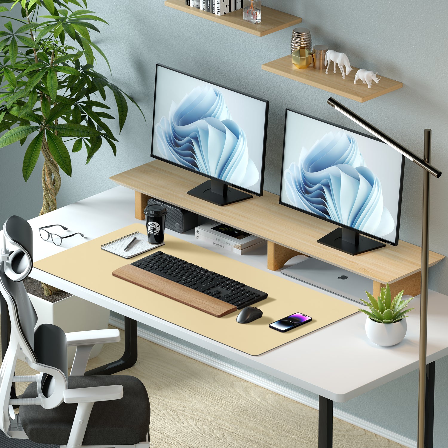 Our table mats come in three to five sizes, giving you the flexibility you need. Small, medium, and large provide space for your external keyboard and mouse. Each of these products can be used with the Aothia Monitor Stand desk stand and will work with any size desk.