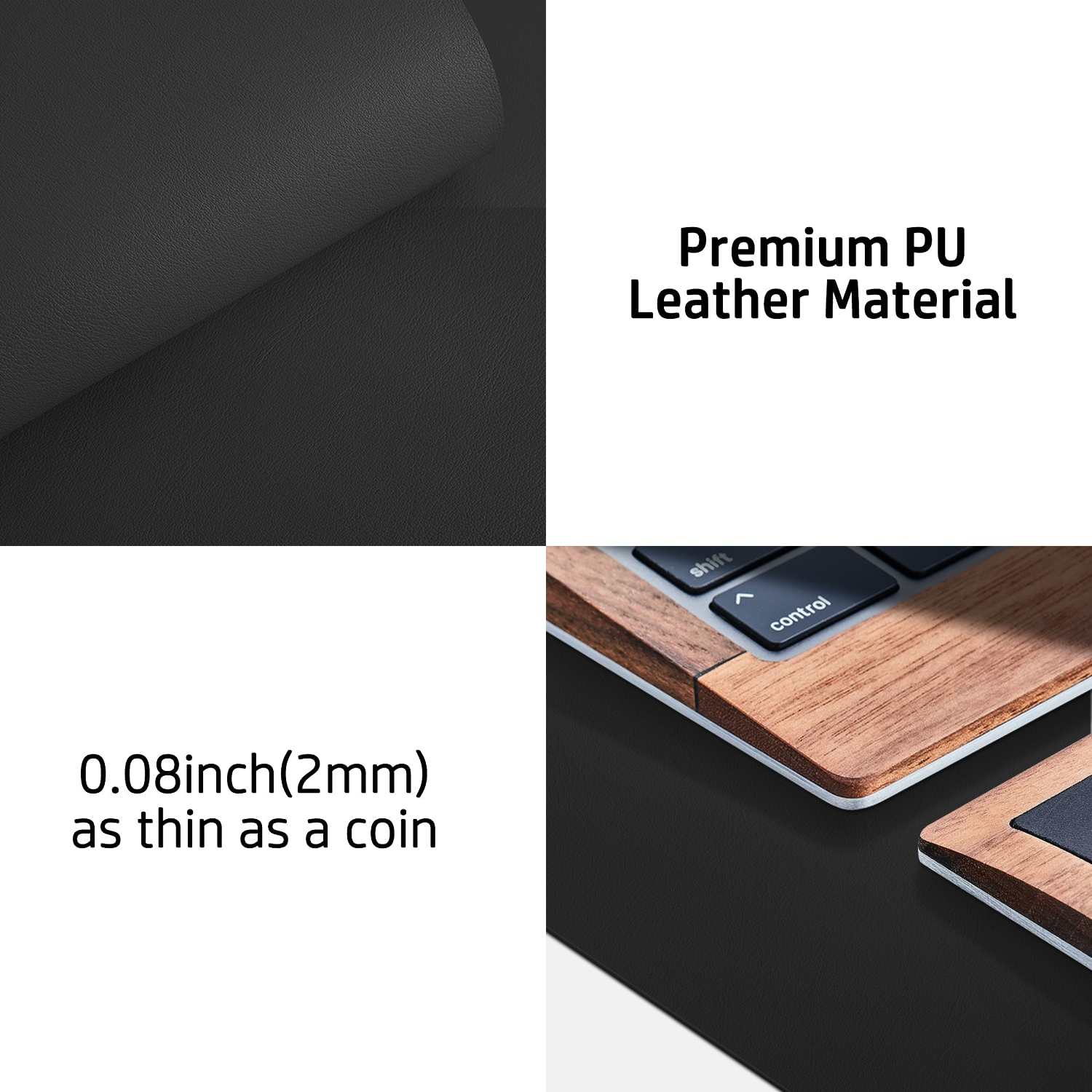 Special Cork suede design for back side,increase friction resistance with the desktop,Non slip.The friction resistance is increased by 70% than that of double-sided leather.