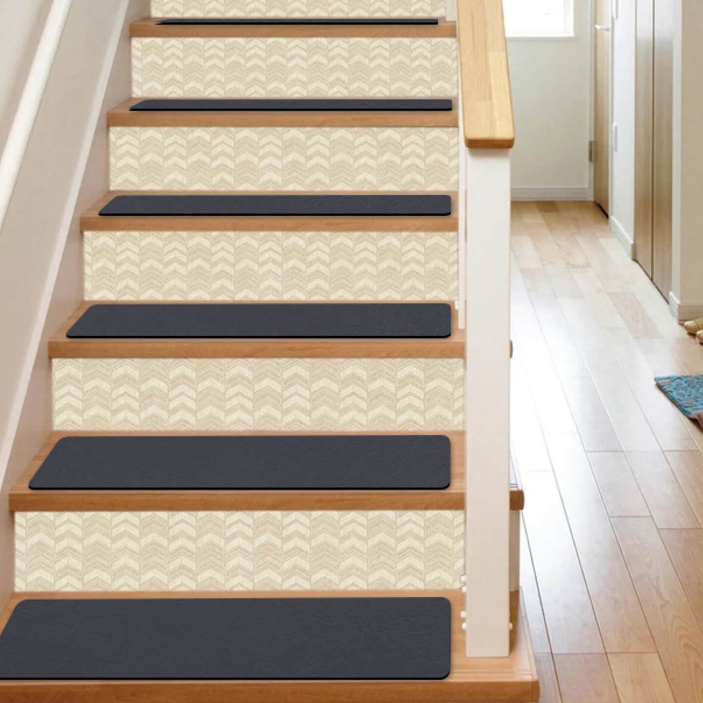 - 🐕 Rubber Backed: Non slip stair treads indoor wih the rubber backing, can be firmly attached to the ground and effectively keep your family, kids and pets safe, and stair grips non slip will not destroy your stairs at all, because the anti moving of the bottom that we created is no glue or permanent adhesive, there won't be any residue when you remove them from the steps.