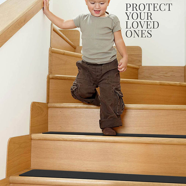- 🐕 No Adhesive: Anti-slip stair treads can obviously secure your safety when you go up and down the stairs. In addition, they won't destroy your stairs at all, because the anti moving bottom we created is NOT glue or permanent adhesive, and there won't be any residue when you remove them from the steps. Please be know that our rubber stair mats are not suitable for outdoor use.