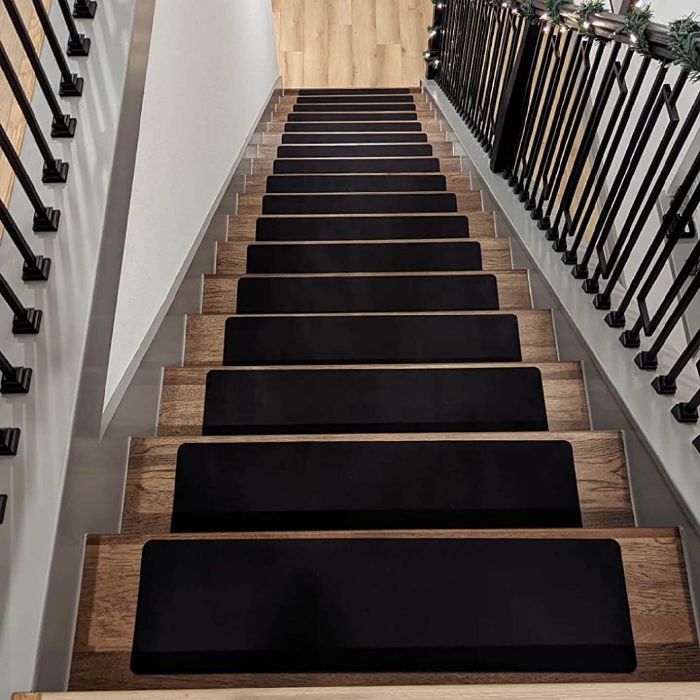 - 🐕 Low Profile & Quick Dry: Step rugs for stairs will still maintain shape and colors when you wash it by water, and our anti slip for stairs can be cutted to any size, if your step size is kind special, you can easily cut the carpet tread with scissors, 8" X 30" of each carpet for stairs non slip with 15 pieces in pack. rubber stair treads fits most indoor stairs and the stair traction treads quantity meets the needs of most families.